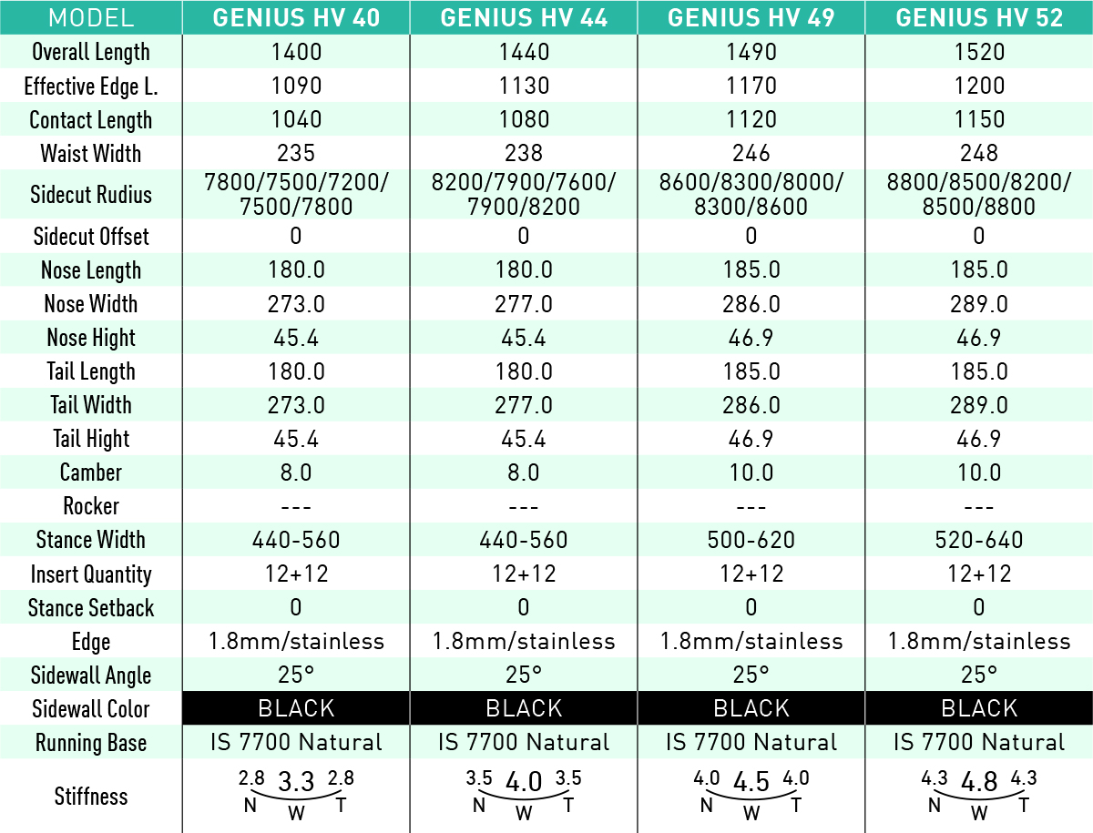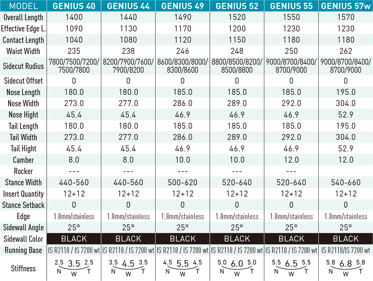 「長めの有効エッジとショートティップ」というGENIUSアウトラインのまま、両足外側の緩やかなロッカーとスタンス間のキャンバーによってグランドトリック用に開発されたハイブリッド・フルツイン。フレックスはキャンバーよりもややソフトに設定されており、グランドトリック初級~上級まで対応するハイパフォーマンスボードとなっている。
