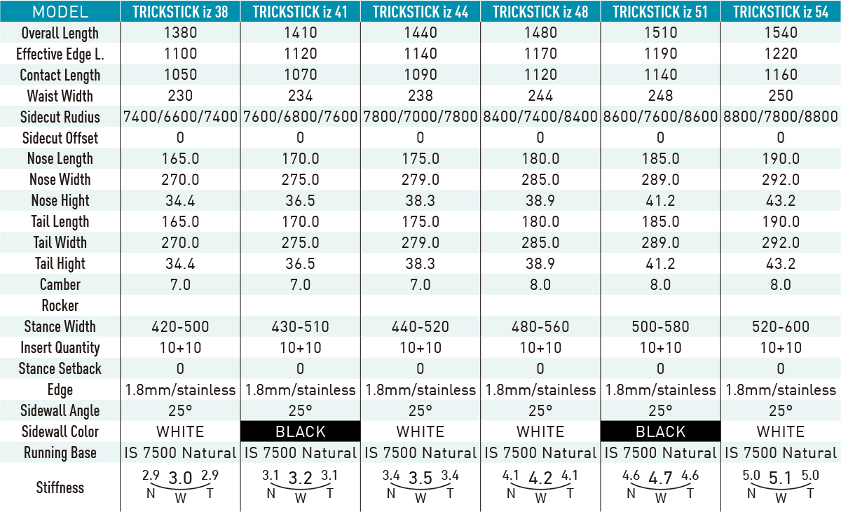 グランドトリックの為に開発を続けるTRICKSTICK。オーリー時にボードエンドの反発をさらに得られるように、ボードのしなやかさと反発を両立させるようフレックスバランスを追求。東洋紡のPE新素材「イザナス®」をスタンス間とティップ部分のコア下に配置する事により、新次元のしなやかさと反発の良さを両立。さらにアクティブキャンバーとの相乗効果で、操作性とポップなフィーリングの両立を実現している。
