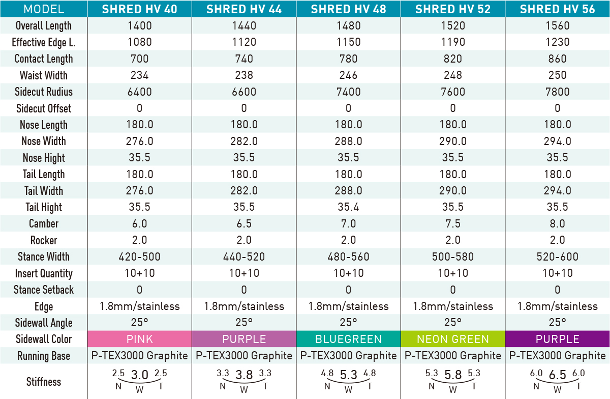 両足下から外側をわずかにロッカーとし、スタンス間はキャンバーというハイブリッド=キャンバー&ロッカーへと進化したSHRED。スタンス間のキャンバー部分で確実なエッジングを容易にし、足外部分のロッカー部でグランドトリックでの高い操作性を実現。接雪面をフラットにすることでプレスの安定化を高め、プレスコントロールが足元でしっかりと操作できる。キャンバーとロッカーの利点を合わせ持つ、オールマイティ性をもったグランドトリックモデルだ。