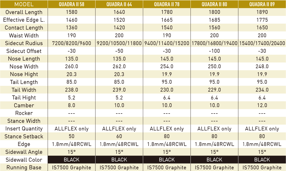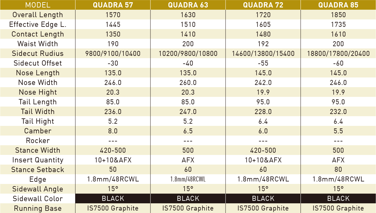 長めの有効エッジとショートティップ・アウトラインのキャンバー・フルツイン。熟成されたフレックスバランスで、キッカーでの抜けやランディングの安定感は卓越している。さらに、フリーランでの安定したカーヴィング性能という、複合的で相反するフリースタイル要素を高次元で融合したモデル。