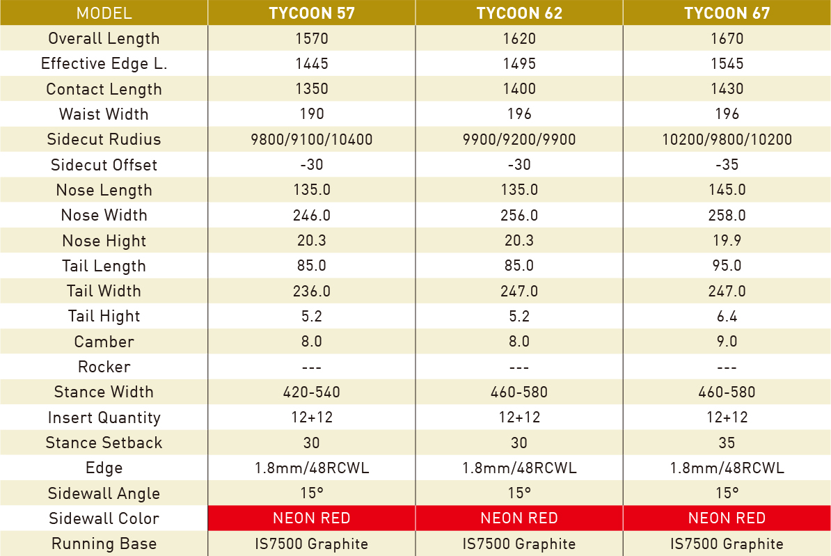「タイプエックス 161」の最大の特徴は、その緩めのサイドカットとさらにワイドになったウエスト幅。Type-R使用時よりもさらにボードを立てにいった場合でも「曲がりすぎる」ことがなく、ドラッグしにくく、さらに下方向へカーヴしながら落下していく・・・と言った軌跡を表現することができる。「タイプエックス 152」は、ウィメンズ・コンペティターのために再設計されたスペックを持つ「純競技モデル」。ショート~ミドル、ロングへとターン弧を自由自在にコントロールすることができる高次元のアウトラインシェイプモデルだ。