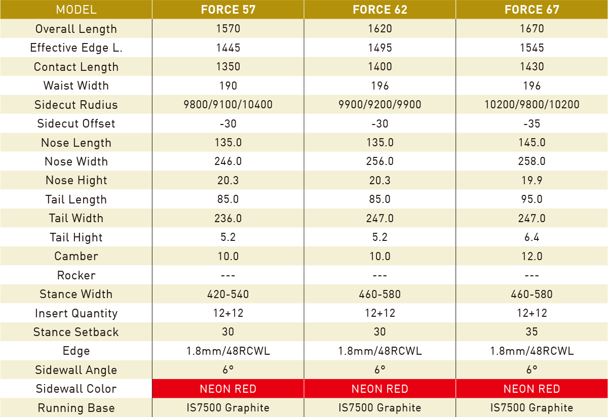 GRAYハンマーシリーズの開発テクノロジーをフィードバックし、ベーシックなウッド/ファイバーグラス構造ならではの、しなやかで粘りのあるカーヴィング性能を開発しました。カーヴィングのエントリー層に向けて開発したミディアムソフトフレックスモデルで、中低速からのイージーカーヴィングが特徴です。